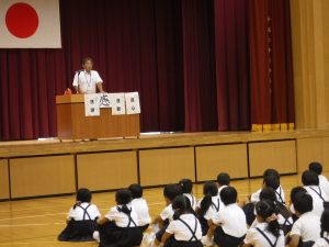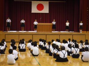 各学年の代表の子供が、第1学期にがんばったことを発表しました。