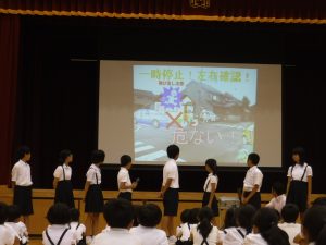 夏休みの生活について、6年生から「下村の危険箇所」についての発表や、