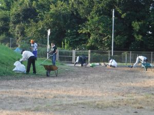 PTA学校美化ボランティア 8月27日 Posted on 2017/08/29by 3nenカテゴリー:全校 早朝から校舎内の掃除や校庭の環境整備にご協力いただき、ありがとうございました。 朝の空気が、だいぶ涼しくなり、夏の終わりを感じるようになってきました。 第2学期のスタートまで、残り一週間です。 9月1日に元気な姿で、全校児童84名が登校できるとよいですね。